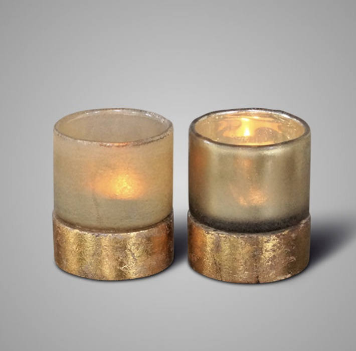 SORT. OF GOLDEN TEALIGHT WITH GOLDPLATED WOODENBASE 2021 M